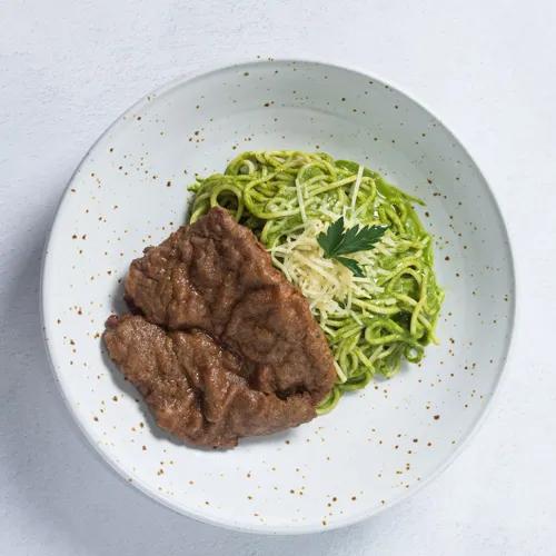 Spaguetti al pesto limeño con sábana de lomo - La Baguette - 50...