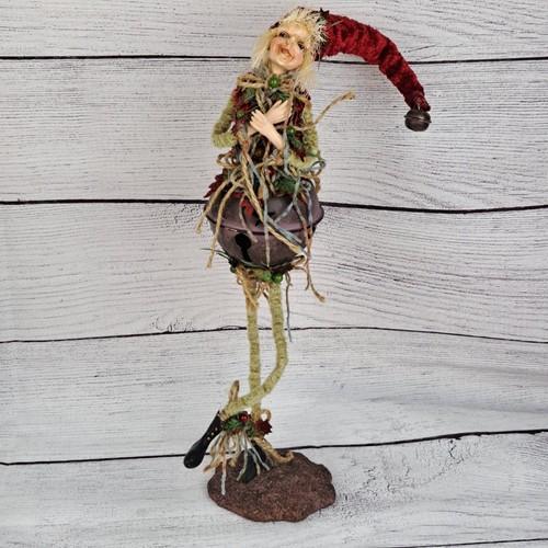Whimsical Christmas Elf Posable Doll Bell Body Long Legs...