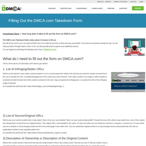 How long does it take to fill out the form on DMCA.com?