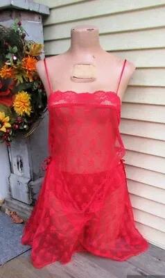 Vtg SHEER Babydoll Nightgown Lorraine 2 pcs RED Lace Negligee...