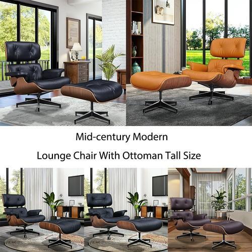 Large eames-style Genuine leather lounge chair with ottoman...