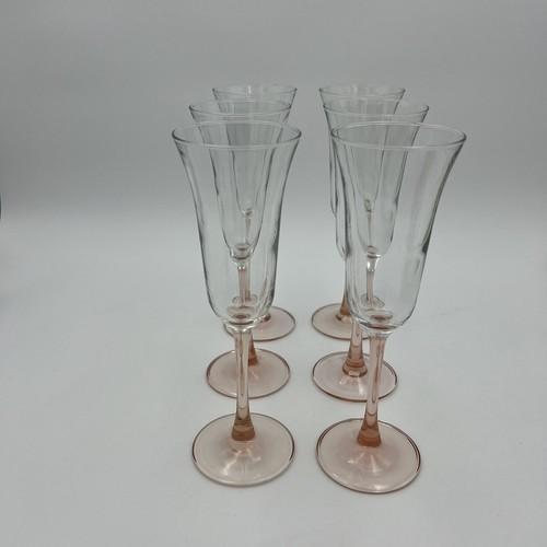 Luminarc Pink Rose Stem Champagne Flutes Wine Glasses 8.75...