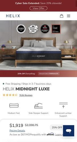 Helix Midnight Luxe Queen Size Mattress - MSRP $1,919 FREE...