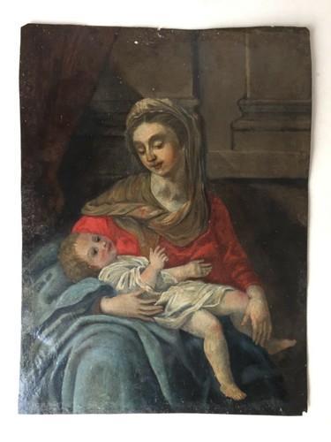 Antique Oil Copper painting 17th century Portrait Madonna and...