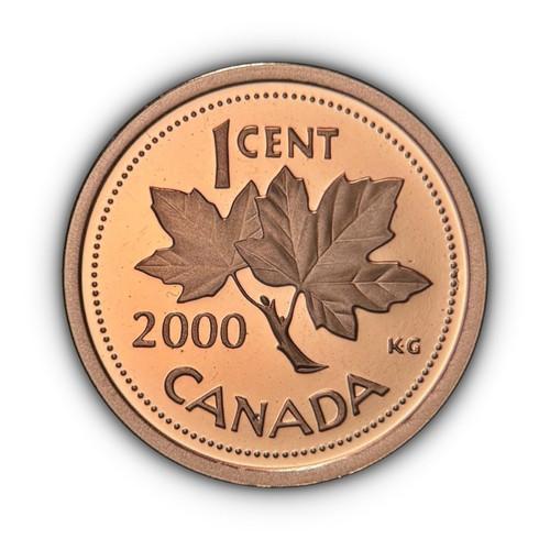 CANADA. 2000, 1 Cent - QEII, Maple Leaf, Frosted Superb Gem...