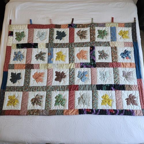Maple Leaf Quilt Wall Hanging 70x48" Vintage 1980s Hand...