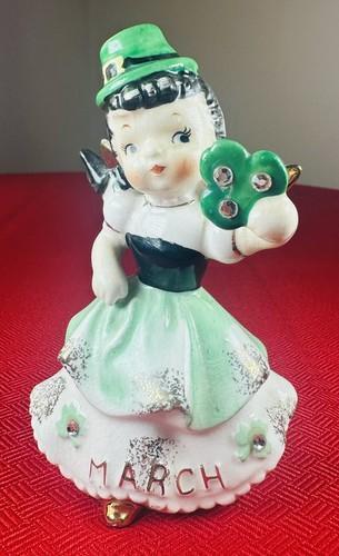 Vintage Napco Girl March Birthday Angel 1950s Shamrock St...