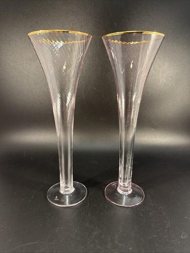 Set of 2 Anthropologie Marion Pink Champagne Flutes 10" Optic...