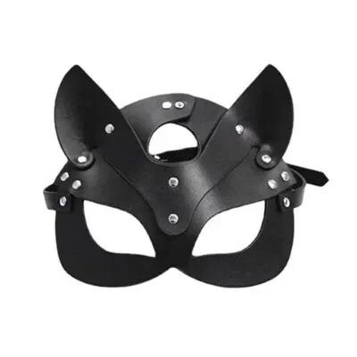 Mask PU Leather Head Black Eye Mask Halloween Carnival Party...
