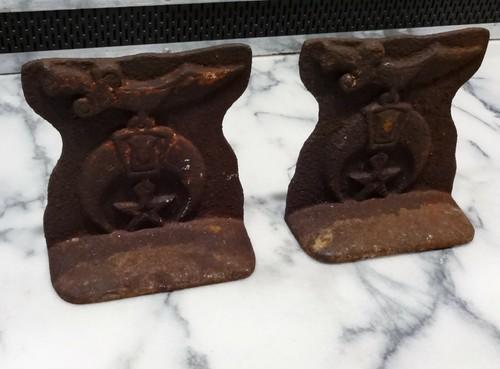 Lot of 2 Antique SHRINER CAST IRON BOOKENDS 3D Masonic Zembo...