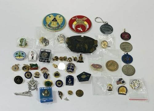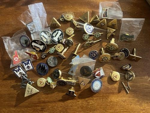49 Vtg Masonic Shriner's Lapel Tie Pins Buckle Coins 40 50 60...