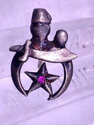 Vintage early sterling silver Shriners Masonic Pin with Ruby