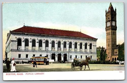 Public Library, Trolley, Boston Massachusetts MA Vintage...