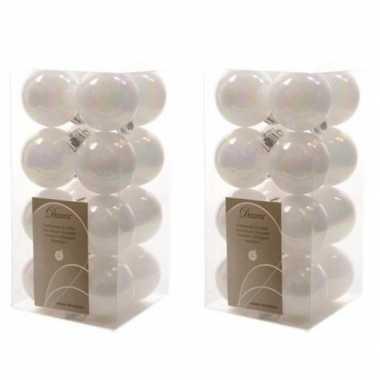 32x kunststof kerstballen glanzend/mat parelmoer wit 4 cm...