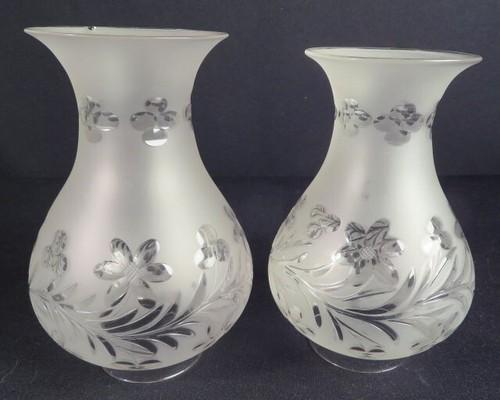 1830-50's Matched Pair Stone Wheel-Cut Argand Pre-Kerosene Shades