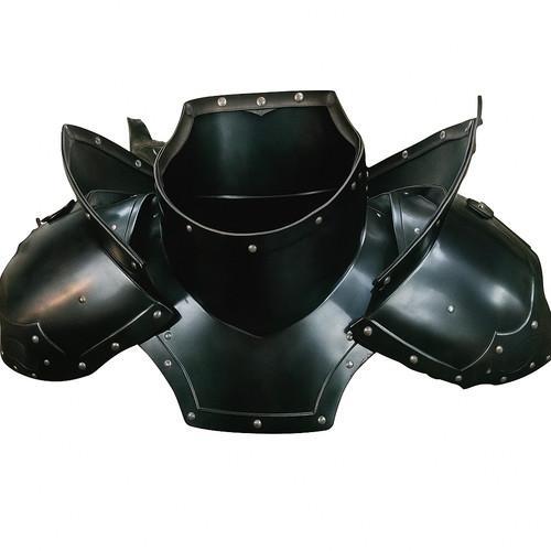 Black Steel Medieval Armor Set Chestplate Pauldrons & Gorget...