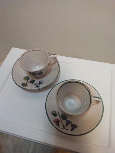 Meister Red Clay Pottery Rare Demitass Cups Saucer Hand Painted...