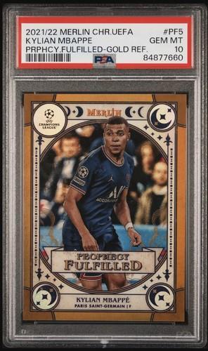 PSA 9 Kylian Mbappe PF5 2021-22 Merlin Chrome UEFA Gold...