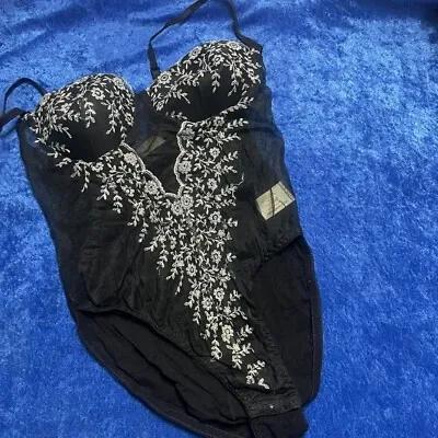 Vintage Delicates Black Mesh Bodysuit Lingerie Teddy High Cut...