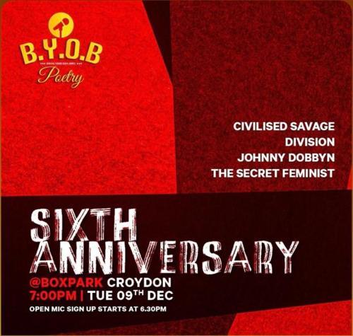 BYOB 6th anniversary open mic night, Boxpark, Tue Dec 9...