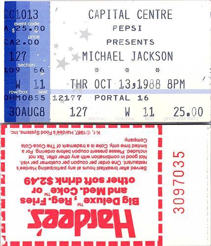MICHAEL JACKSON CONCERT TICKET STUB, 10/13/1988, CAPITAL CENTRE