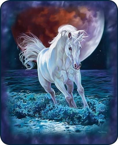 60x80 White Unicorn Ocean Space Moon Mink Faux Fur Twin Full...