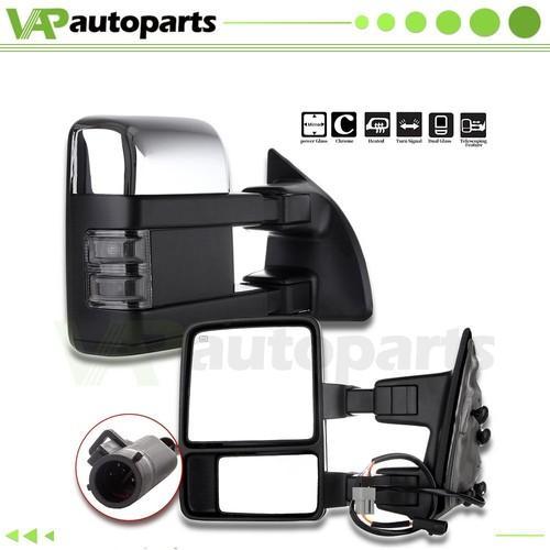 Power Heated LED Smoke Signal Chrome Towing Mirrors Pair For...