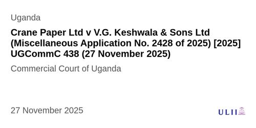 Crane Paper Ltd v V.G. Keshwala & Sons Ltd (Miscellaneous...