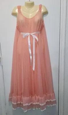 NEW VTG Miss Elaine M Pink Nightgown Sheer Chiffon Lace Long...