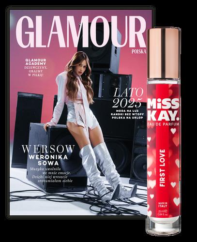 Glamour 7-8/2025 z wodą perfumowaną Miss Kay First Love...