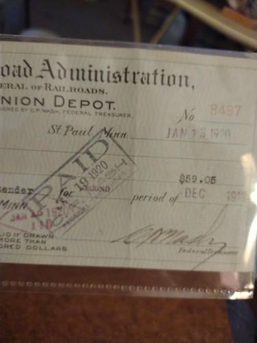 2 RAILROAD ADMINISTRATION CHECKS ST PAUL MN UNION DEPOT 1920