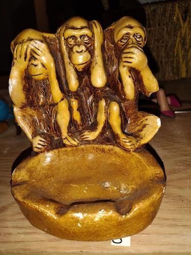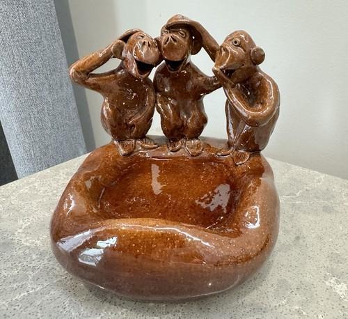 Vintage Ceramic Ashtray Monkeys. No See, Hear, Speak. (No Evil)