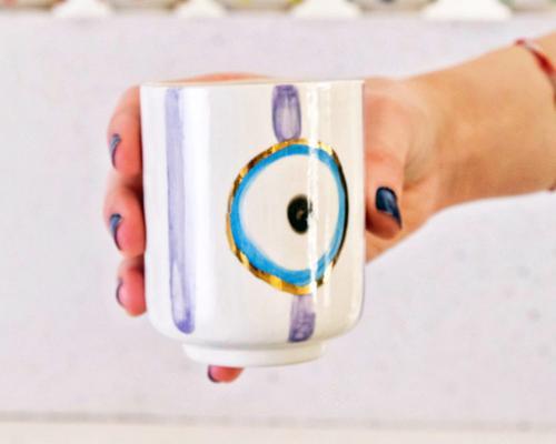 Mor Nazar Boncuğu Desenli Altın Dekorlu Stoneware Tabak v2...