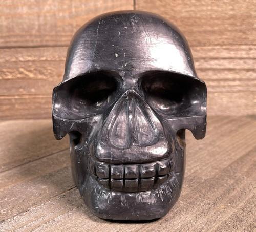 SHUNGITE Crystal Skull, Large - Gothic Halloween Home Decor...