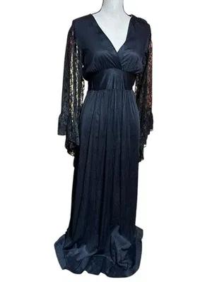 FREDERICKS OF HOLLYWOOD USA Morticia Style Nightgown Lace Black...