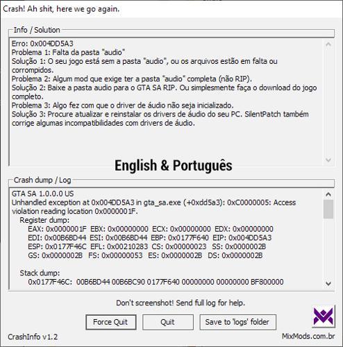 [III|VC|SA] CrashInfo v1.2.1 (mostrar solução de crash...