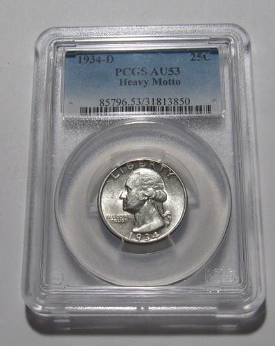 1934 D Washington Quarter - PCGS AU53 Condition (Heavy Motto...