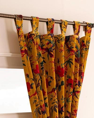 Mustard Bird Print Velvet Curtain, Boho Curtain, luxury Drapes...