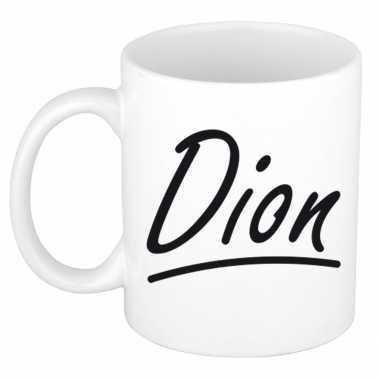 Naam cadeau mok / beker dion met sierlijke letters 300 ml...