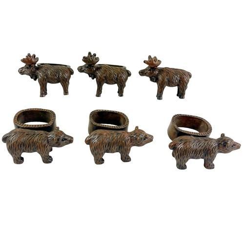 Rustic Napkin Rings Set of 6 Moose Bear Woodland Animals Lake...