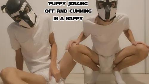 Puppy Jerking Off And Cumming In A Nappy - Diaper Bay