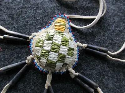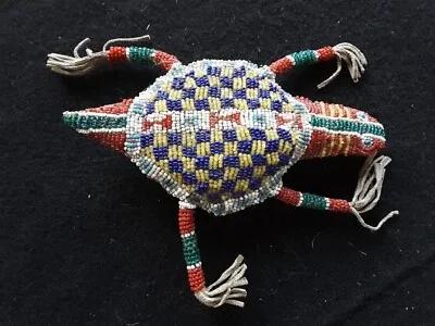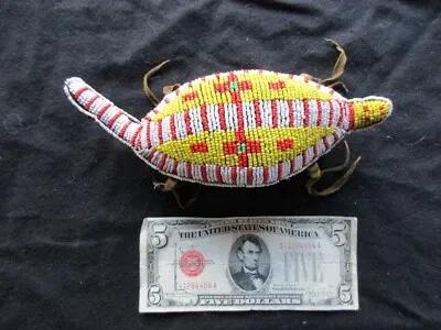 RARE, OLD NATIVE AMERICAN BEADED LEATHER FETISH, TURTLE AMULET...
