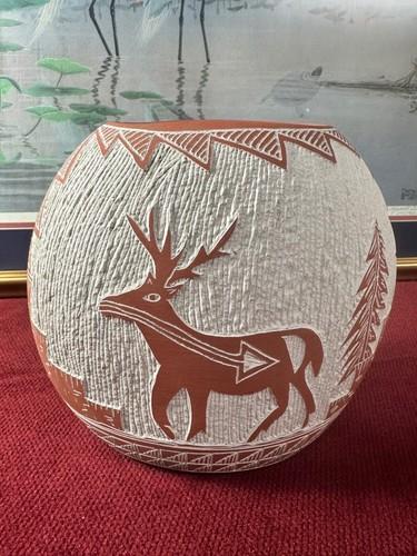 Native American Mesa Verde Red Clay Signed Etched Art Pottery