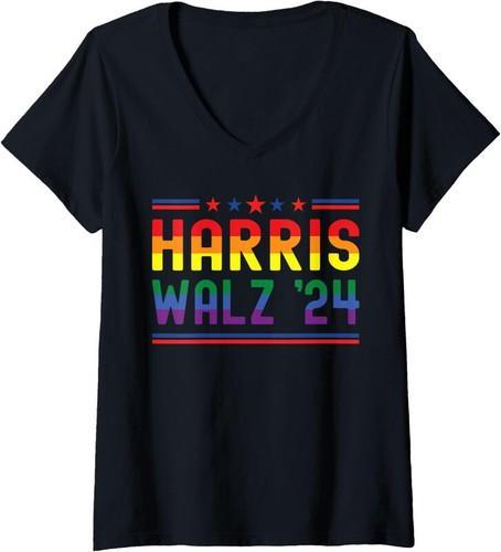 Harris Walz Waltz 2024 LGBTQ Pride Ladies' V-Neck Tshirt