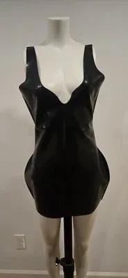 SEXY LADY LATEX RUBBER LOW V NECK BLACK DRESS SIZE L - Image 1...
