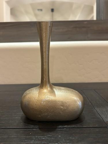 Gold Metal Long Neck Vase Retro Vintage Heavy 7” tall