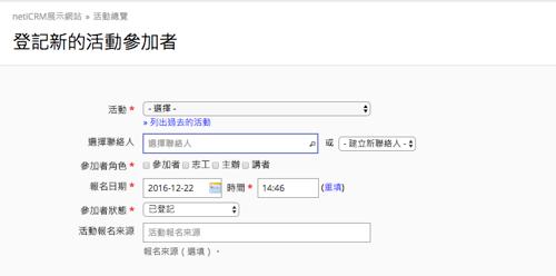 登記活動參加者 | netiCRM 非營利組織專屬支持者關係管理系統
