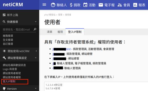 限制管理員登入IP與設定 | netiCRM 非營利組織專屬支持者關係管理系統