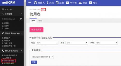 網站使用者帳號 | netiCRM 非營利組織專屬支持者關係管理系統