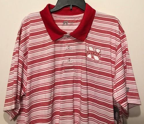 New Nebraska Cornhuskers Men's Polo Shirt White Stripes...